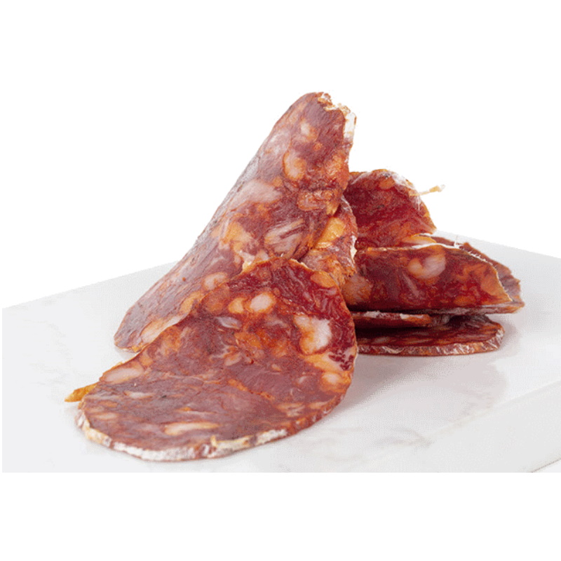 INGREDIENTI: Carne e grasso di maiale, sale, paprika, destrina, destrosio, proteine ​​della carne (maiale), spezie, emulsionanti (E-450i, E-450iii, E-451i, E-452i, E-452ii), zucchero, antiossidanti (E-301, E-325, E-331iii), conservanti (E-252, E-250) e aroma naturale.