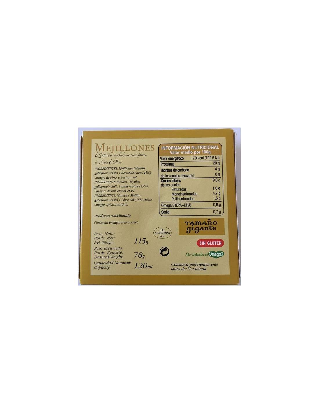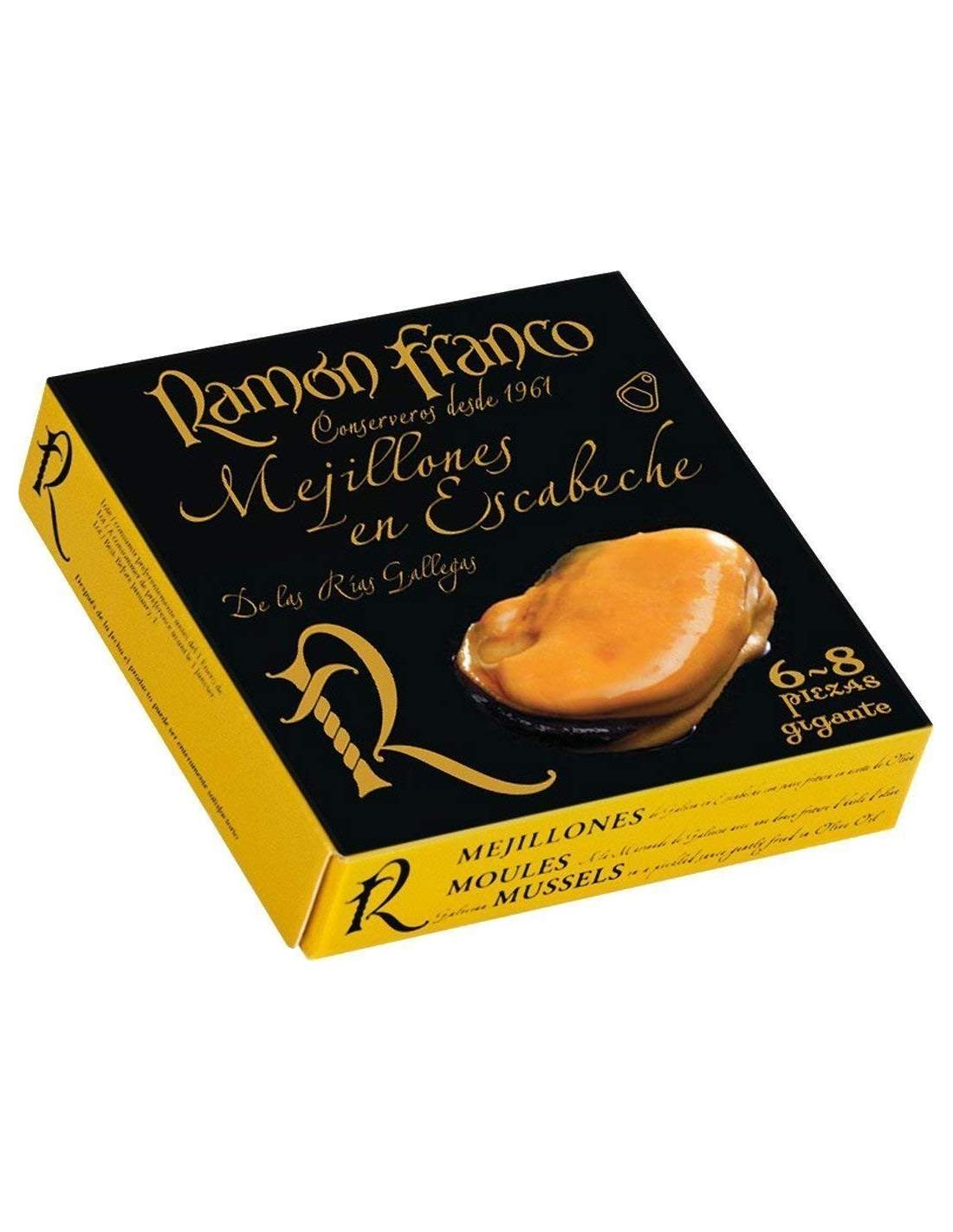 Cozze in salamoia Ramon Franco 6/8 pezzi. Direttamente estratto dall’estuario, selezionato, pulito e confezionato a mano. Ecco come vi presentiamo i più grandi esemplari di cozze sul mercato. Una delle straordinarie conserve che Ramón Franco ti offre. Con una sottaceti molto liscia. Ideale per il consumatore che non vuole assaggiare l’aceto. Il migliore sul mercato!