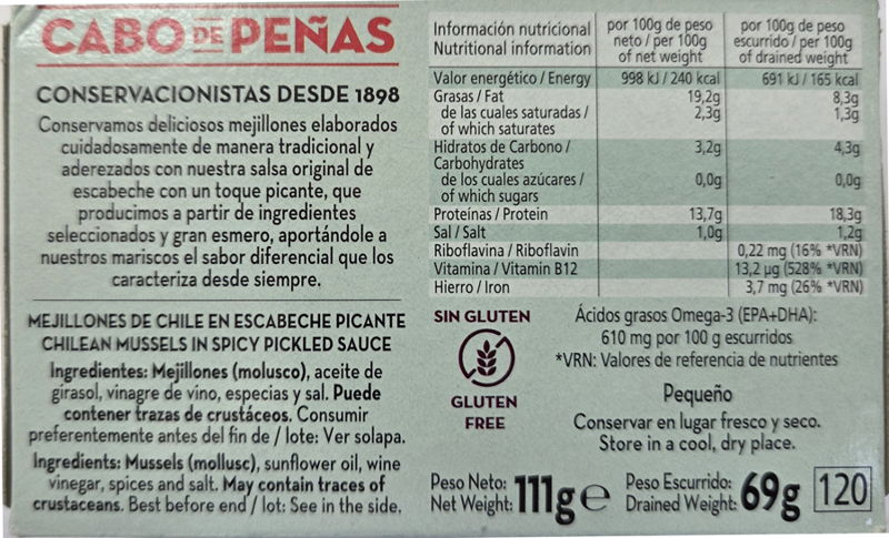 Cozze sottaceto piccanti 13/18 Cabo de Peñas OL-120