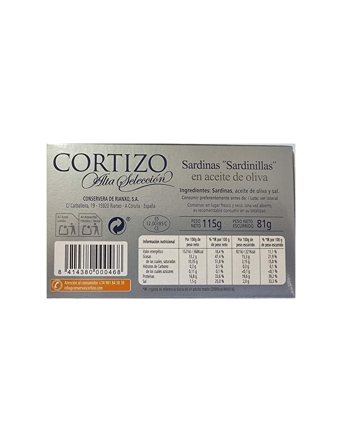 Piccole sardine Rianxo in olio d’oliva Alta Selección Cortizo RR-120