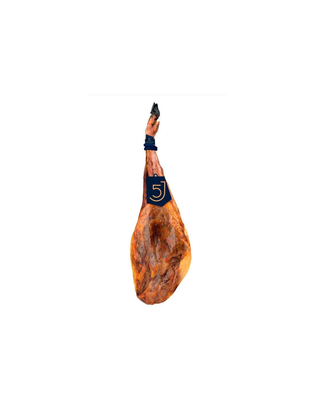 Prosciutto Iberico di ghianda 5J. La maggior parte degli allevatori lavora con suini iberici di razza mista, frutto dell’unione tra maiali di razza iberica pura e suini di razza europea. Sono selezionati per la loro maggiore produttività ma danno origine a sapori e aromi diversi da quelli del maiale iberico al 100%. Cinco Jotas seleziona solo esemplari di razza iberica pura e ha una squadra di veterinari e tecnici agricoli che si dedicano esclusivamente allo studio, alla cura e al controllo dell’animale: il maiale iberico al 100%. L’etichetta nera sostiene il prodotto come 100% Iberico de Bellota e, quindi, è anche una garanzia di eccellenza e qualità. Solo i prodotti contrassegnati con l’etichetta nera possono essere chiamati zampa nera.