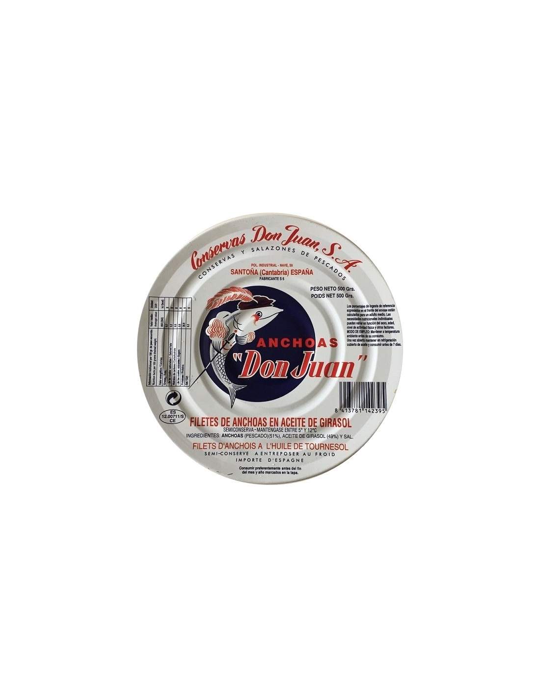 Filetes de anchoa Don Juan (Santoña)  Don Juan, lata 500g.