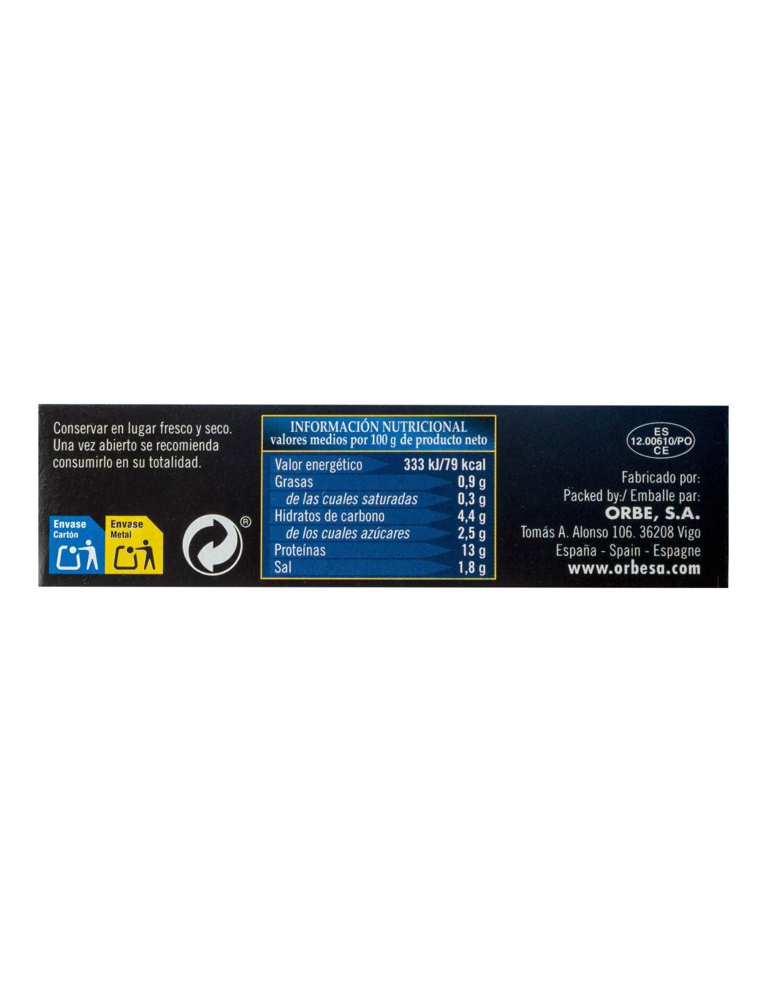Conservar en lugar fresco y seco, una vez abierto conservar en el frigorífico un máximo de 48 horas.
