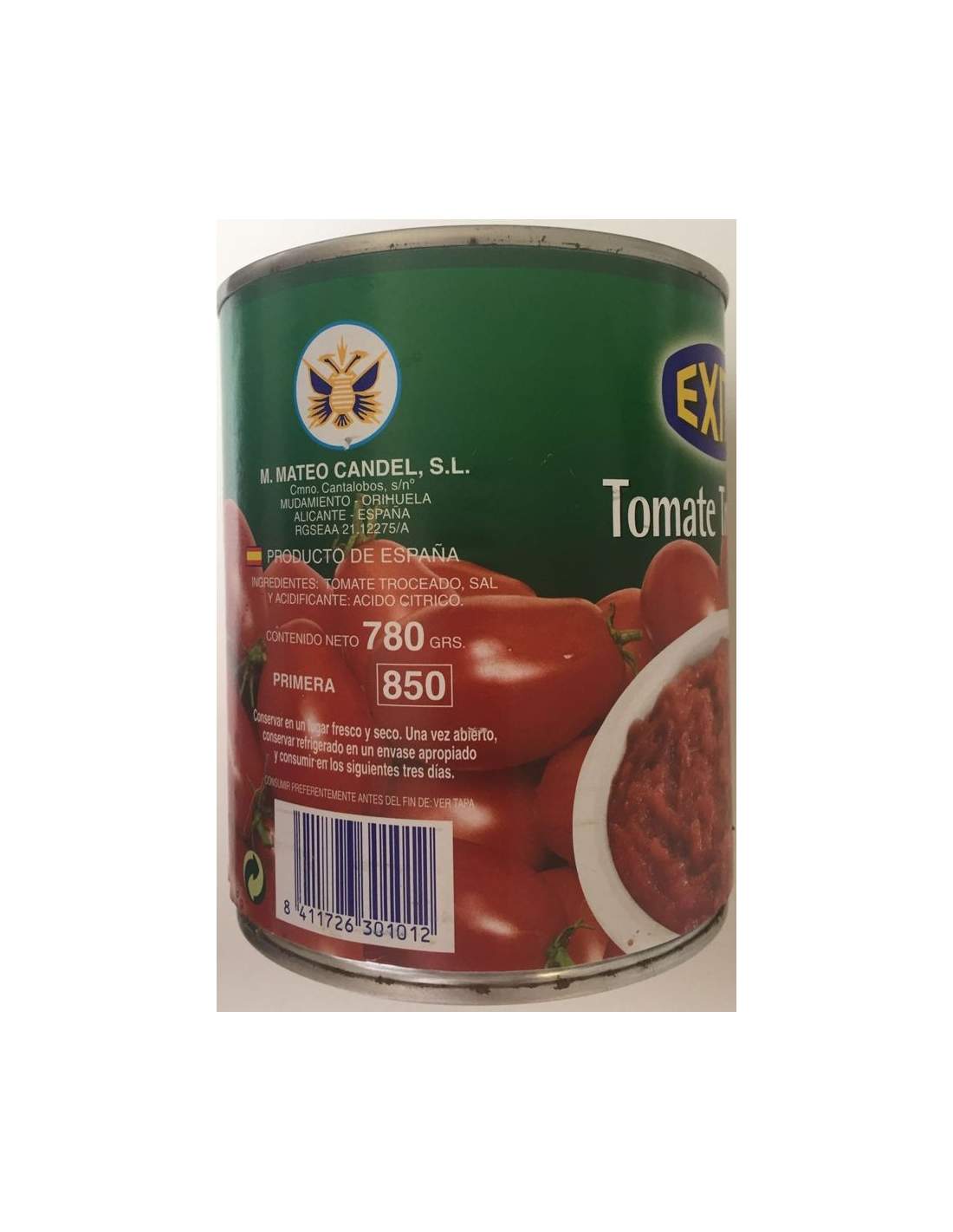 Bote de tomate troceado marca Éxito 1 kg.