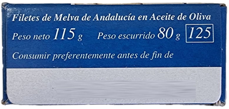Ingredientes: Melva (pescado), aceite de oliva y sal.