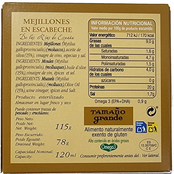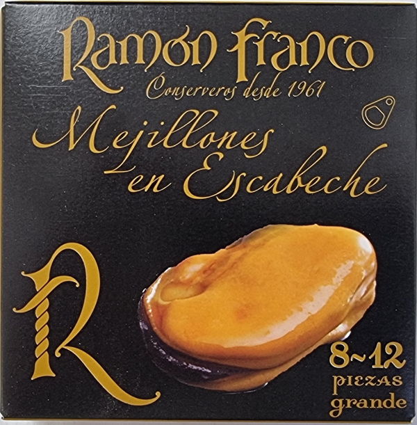 Mejillones en escabeche Ramon Franco 8/12 piezas.Los auténticos mejillones de las Rías Gallegas fritos en aceite de oliva. Como tradicionalmente se han preparado en Galicia. Con un escabeche muy suave. Ideal para el consumidor que no quiere sabor a vinagre. Los mejores del mercado!