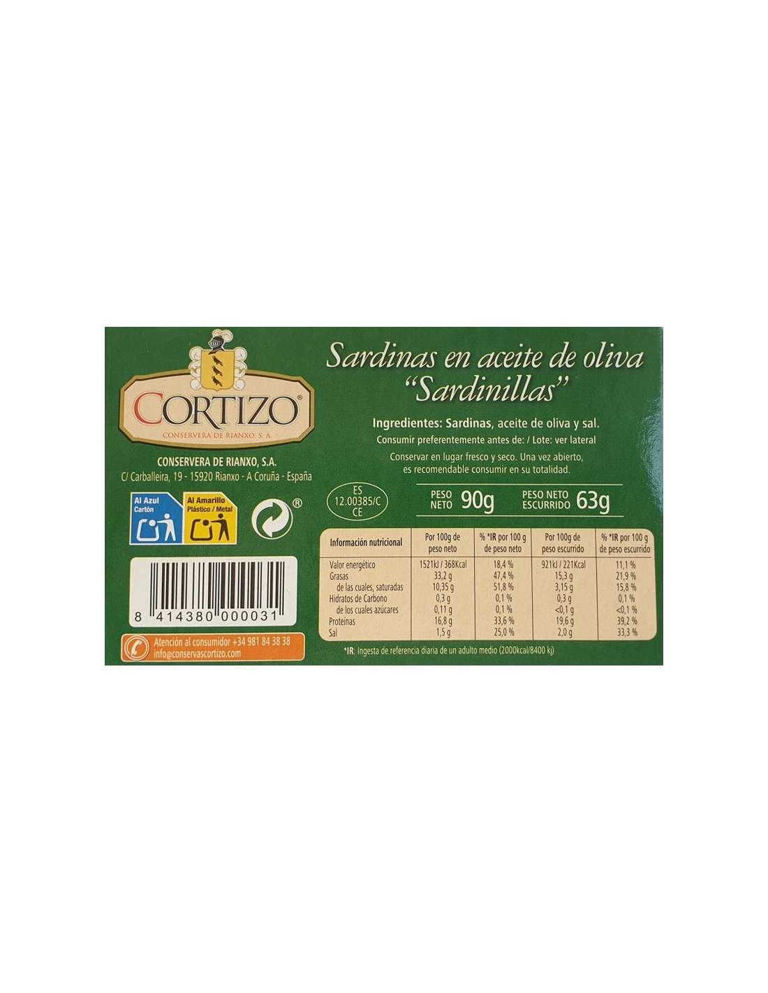 Sardinillas en aceite de oliva Cortizo 7/10 piezas RR-90