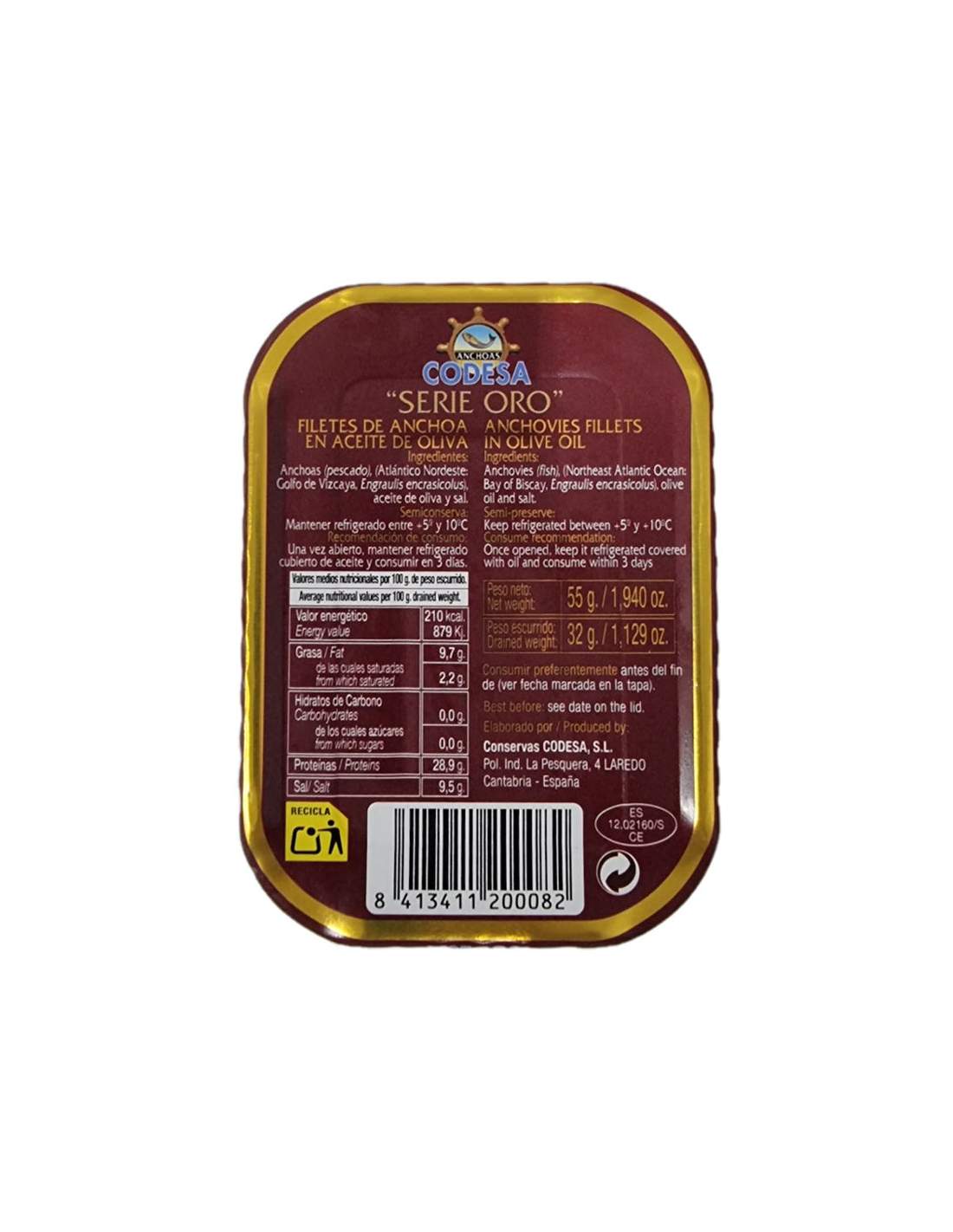 A Série Ouro é feita com Bocarte / Boquerón da pesca CERCO adquirida nos portos de pesca do Mar Cantábrico nos meses de abril e maio, onde selecionamos os melhores itens para seu tamanho e frescor, depois de sermos curados em SAL MARINHO durante em média um ano na vinícola e tem seu ponto ótimo de cura, nossos fitoterapeutas elaboram de forma artesanal os filetes apetitosos que serão finalmente cobertos por AO de primeira qualidade em uma ampla gama de formatos de ALTA QUALIDADE.