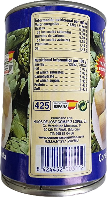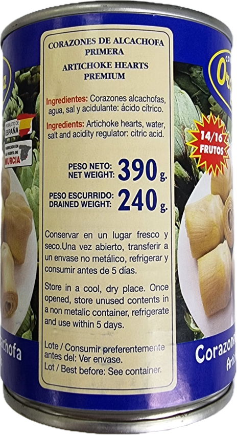 Ingredientes: Corações de alcachofra, água, sal e acidulante: ácido cítrico.